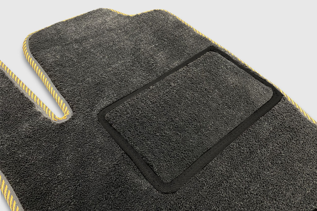Эстетический вид и разнообразие дизайнов: Текстильные подпятники предлагают широкий выбор дизайнов, текстур и цветов, что позволяет подобрать вариант, соответствующий интерьеру автомобиля и личным предпочтениям владельца. Они придают коврику стильный и элегантный вид, что делает интерьер автомобиля более привлекательным и уютным.