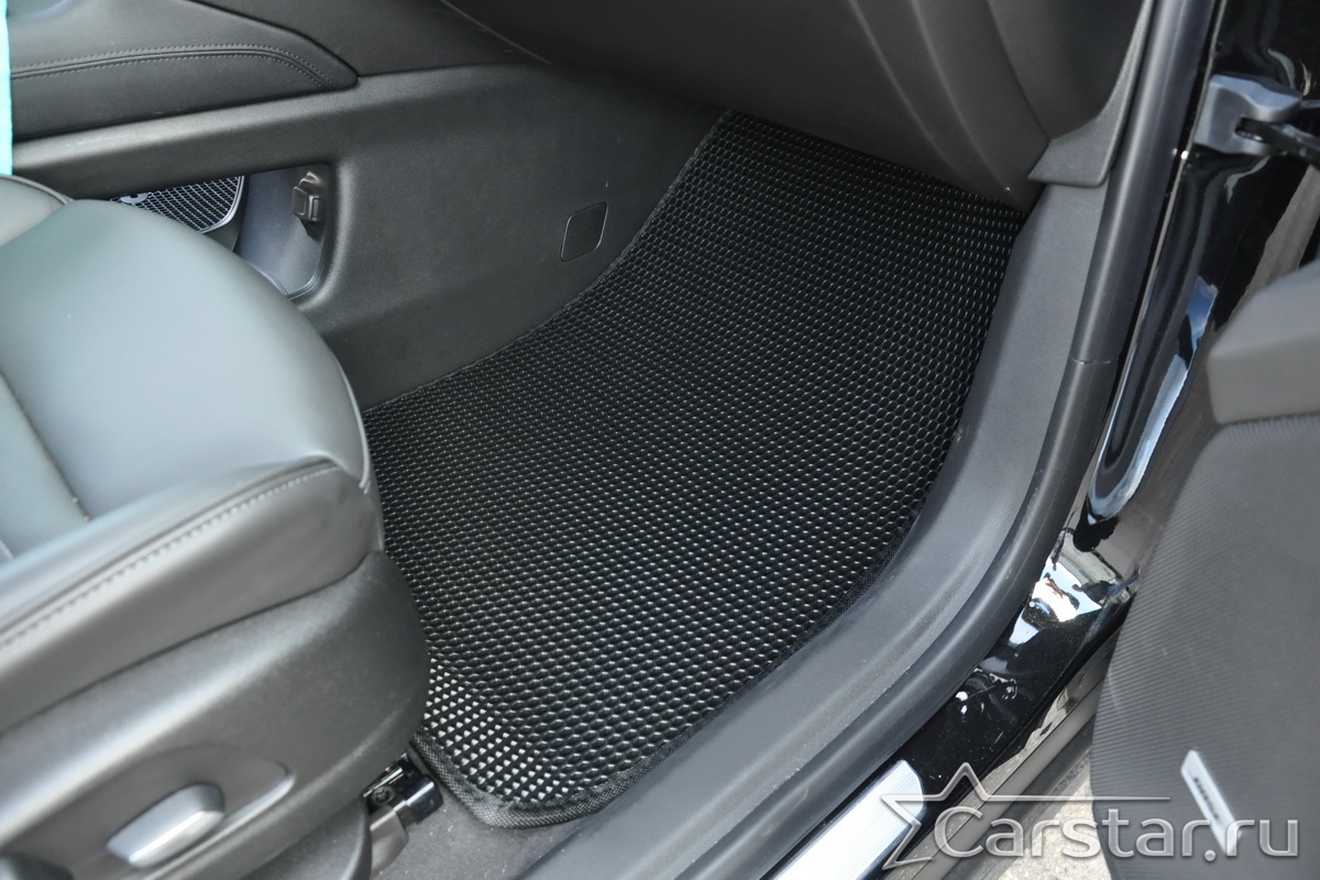 Толщина ковриков EVA составляет 10-12 мм. Глубина ячеек 7-8 мм. Такая толщина ковриков позволяет им служить довольно долго, не протираясь до 3 лет. А благодаря такой глубине ячеек коврик EVA площадью 1 кв.м. способен захватить около 3,5 л жидкости, сохраняя в чистоте вашу обувь и обивку салона.