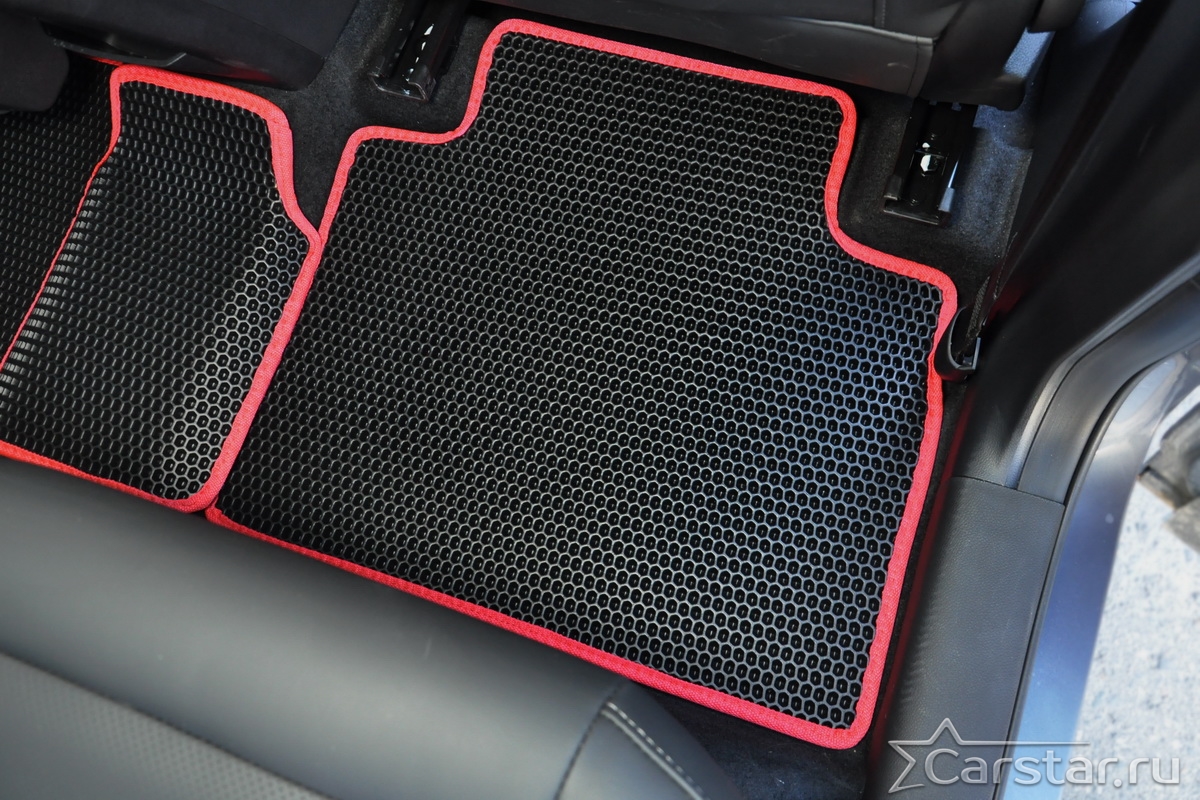 Толщина ковриков EVA составляет 10-12 мм. Глубина ячеек 7-8 мм. Такая толщина ковриков позволяет им служить довольно долго, не протираясь до 3 лет. А благодаря такой глубине ячеек коврик EVA площадью 1 кв.м. способен захватить около 3,5 л жидкости, сохраняя в чистоте вашу обувь и обивку салона.