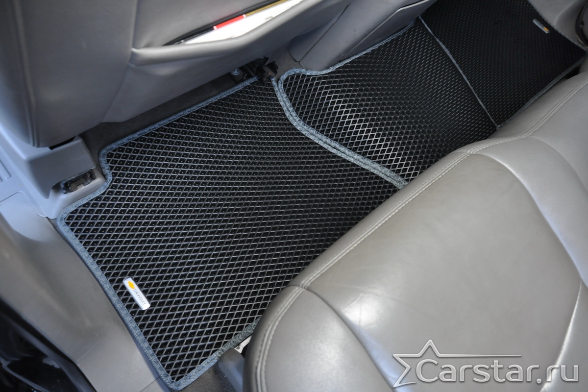 Толщина ковриков EVA составляет 10-12 мм. Глубина ячеек 7-8 мм. Такая толщина ковриков позволяет им служить довольно долго, не протираясь до 3 лет. А благодаря такой глубине ячеек коврик EVA площадью 1 кв.м. способен захватить около 3,5 л жидкости, сохраняя в чистоте вашу обувь и обивку салона.