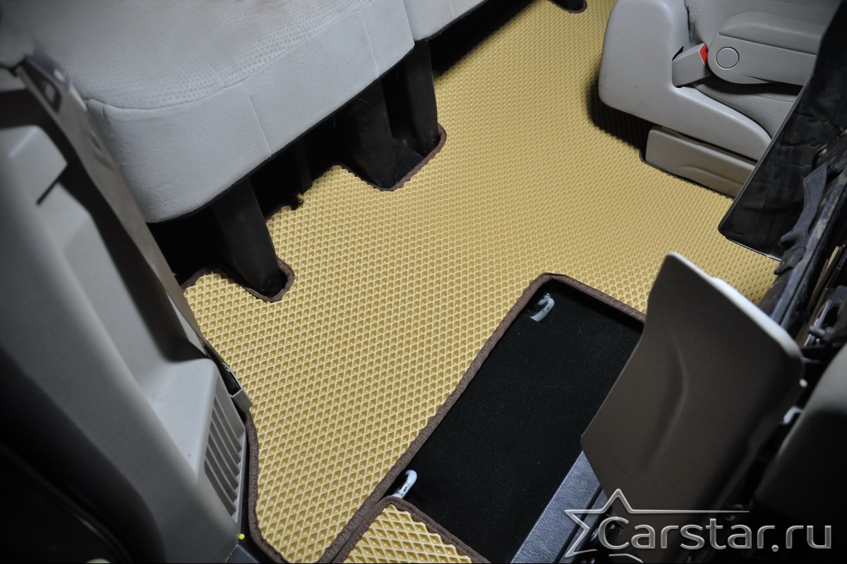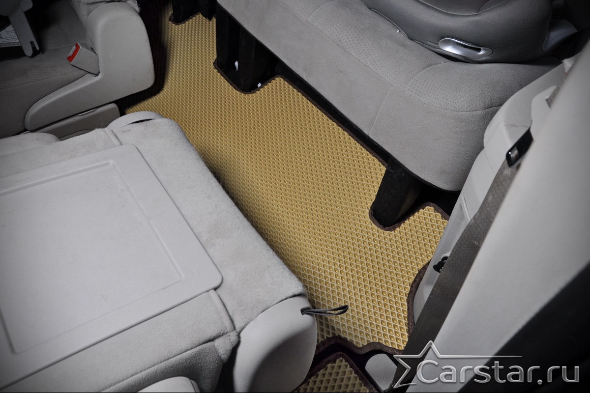 Автомобильные коврики EVA Dodge Grand Caravan V (2007-2020) 2 ряд: кресла 1+1 убираются в пол – это долговечные, удобные и универсальные аксессуары, которые помогут надежно защитить салон и багажник вашего авто от пыли, грязи и влаги в любое время года.