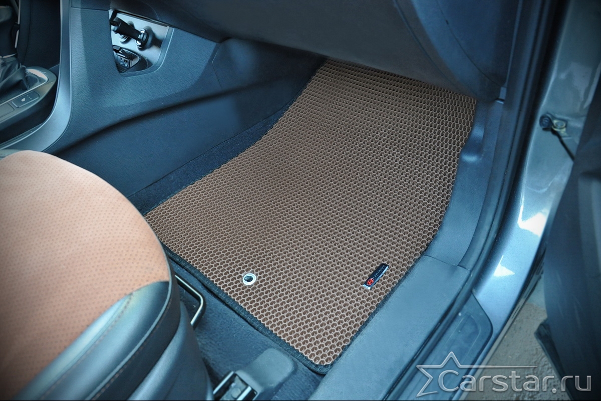 Коврики EVA надёжно крепятся с помощью оригинальных систем фиксации. Благодаря клипсам и липучке коврики защищены от смещений, что обеспечивает комфорт и безопасность вождения. Максимальное удобство также достигается точными, улучшенными лекалами для каждого автомобиля.