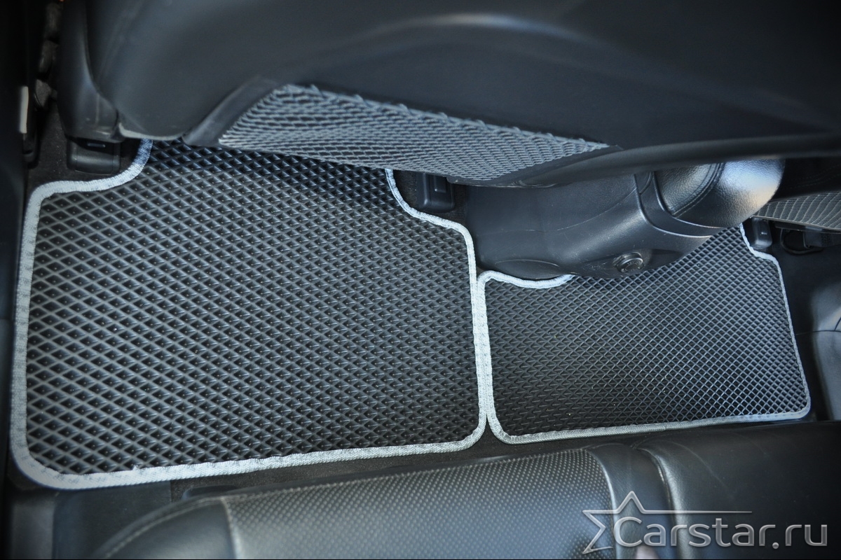 Толщина ковриков EVA составляет 10-12 мм. Глубина ячеек 7-8 мм. Такая толщина ковриков позволяет им служить довольно долго, не протираясь до 3 лет. А благодаря такой глубине ячеек коврик EVA площадью 1 кв.м. способен захватить около 3,5 л жидкости, сохраняя в чистоте вашу обувь и обивку салона.