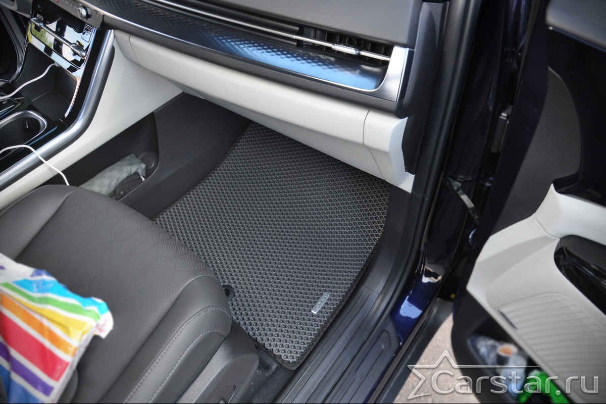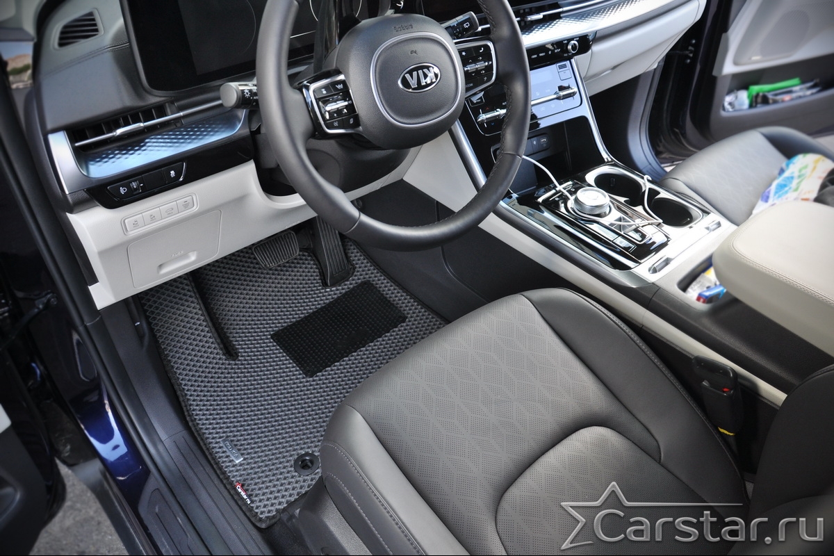 Автомобильные коврики EVA Kia Carnival IV (8мест) Россия (2020->) – это долговечные, удобные и универсальные аксессуары, которые помогут надежно защитить салон и багажник вашего авто от пыли, грязи и влаги в любое время года.