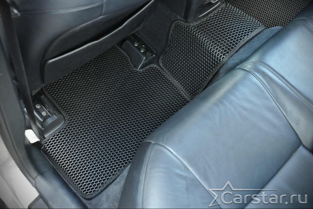 Толщина ковриков EVA составляет 10-12 мм. Глубина ячеек 7-8 мм. Такая толщина ковриков позволяет им служить довольно долго, не протираясь до 3 лет. А благодаря такой глубине ячеек коврик EVA площадью 1 кв.м. способен захватить около 3,5 л жидкости, сохраняя в чистоте вашу обувь и обивку салона.
