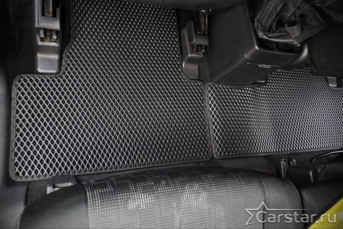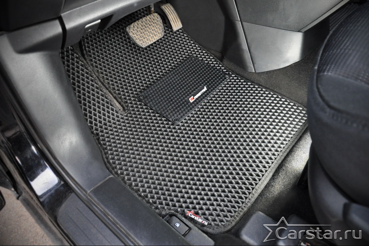 Толщина ковриков EVA составляет 10-12 мм. Глубина ячеек 7-8 мм. Такая толщина ковриков позволяет им служить довольно долго, не протираясь до 3 лет. А благодаря такой глубине ячеек коврик EVA площадью 1 кв.м. способен захватить около 3,5 л жидкости, сохраняя в чистоте вашу обувь и обивку салона.
