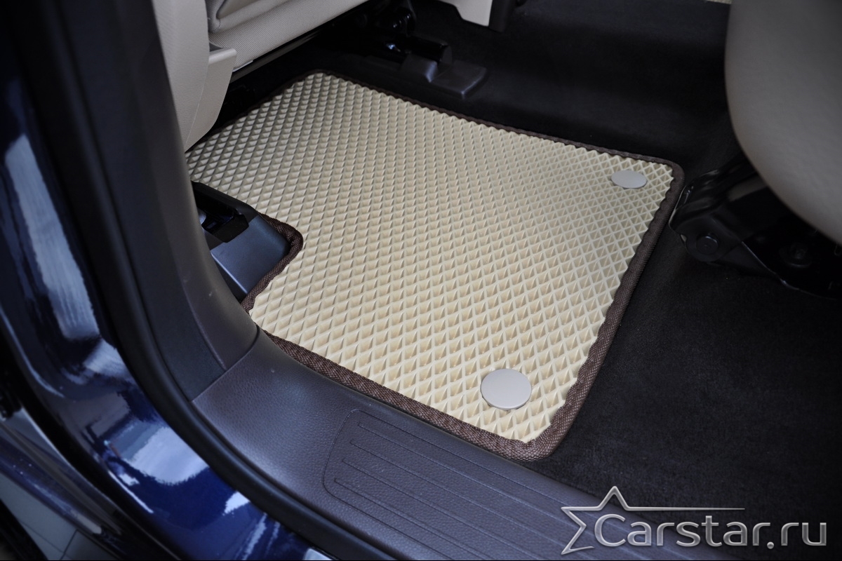 Коврики EVA надёжно крепятся с помощью оригинальных систем фиксации. Благодаря клипсам и липучке коврики защищены от смещений, что обеспечивает комфорт и безопасность вождения. Максимальное удобство также достигается точными, улучшенными лекалами для каждого автомобиля.