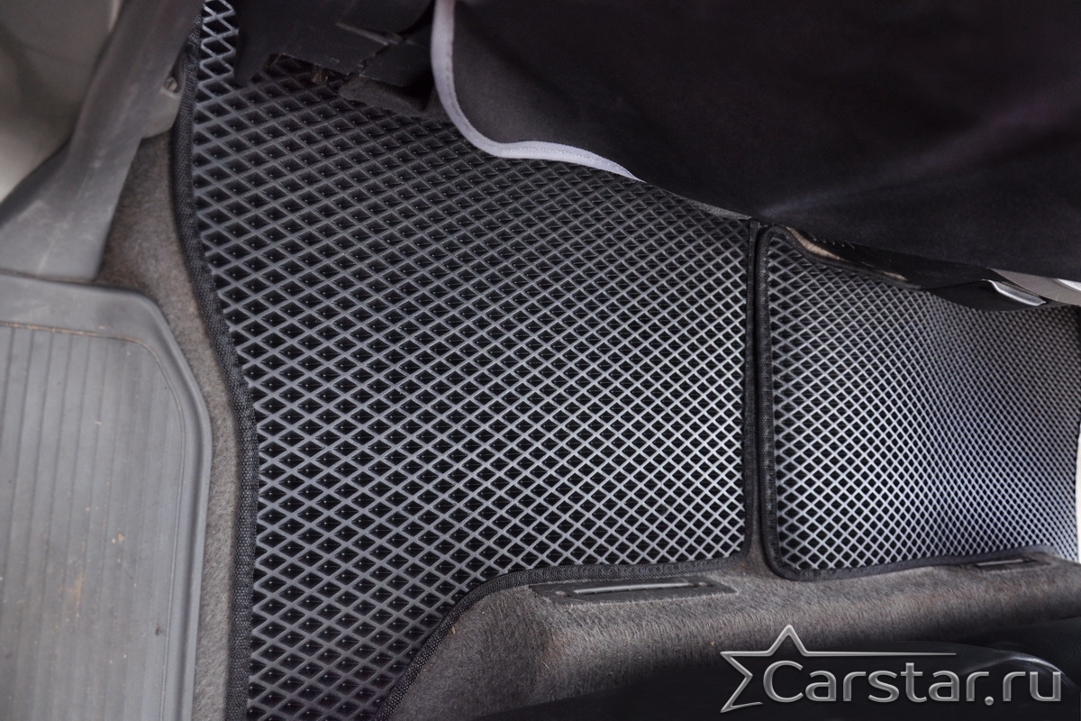 Толщина ковриков EVA составляет 10-12 мм. Глубина ячеек 7-8 мм. Такая толщина ковриков позволяет им служить довольно долго, не протираясь до 3 лет. А благодаря такой глубине ячеек коврик EVA площадью 1 кв.м. способен захватить около 3,5 л жидкости, сохраняя в чистоте вашу обувь и обивку салона.