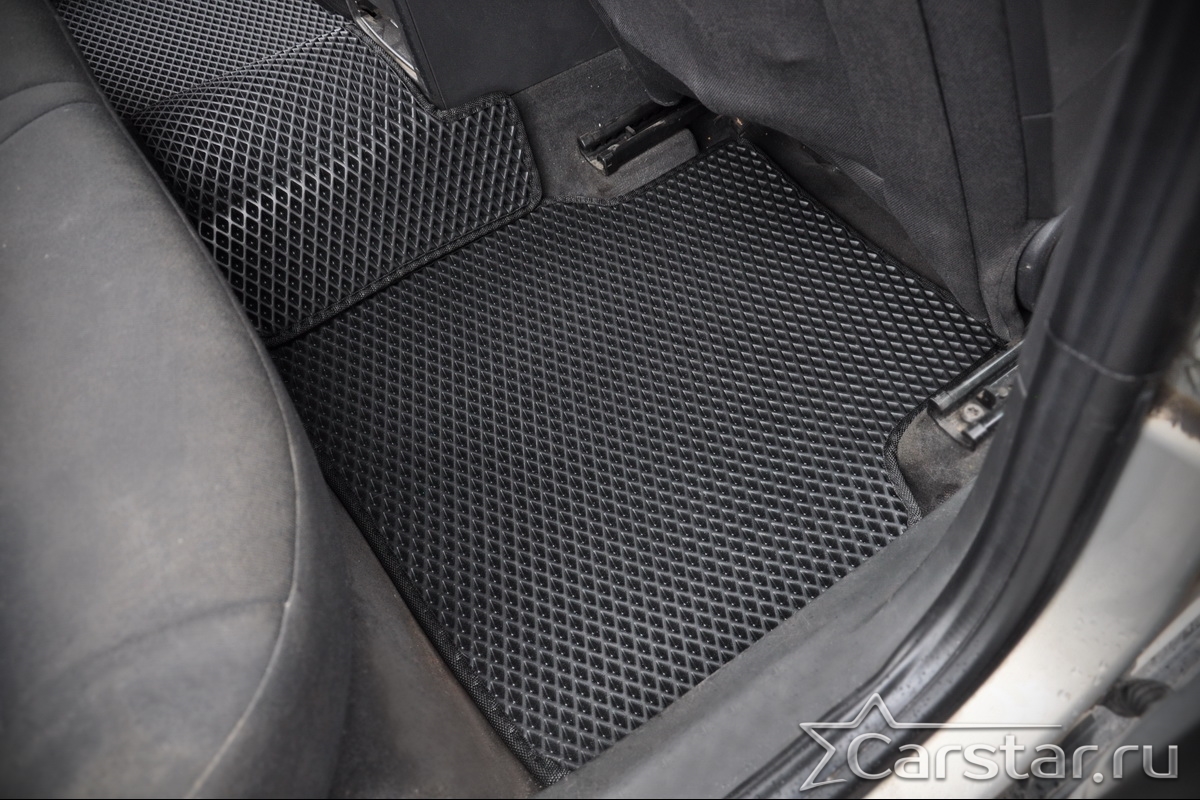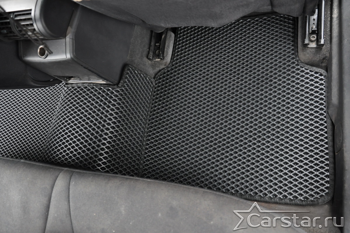 Толщина ковриков EVA составляет 10-12 мм. Глубина ячеек 7-8 мм. Такая толщина ковриков позволяет им служить довольно долго, не протираясь до 3 лет. А благодаря такой глубине ячеек коврик EVA площадью 1 кв.м. способен захватить около 3,5 л жидкости, сохраняя в чистоте вашу обувь и обивку салона.
