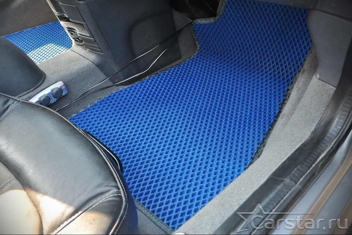 Толщина ковриков EVA составляет 10-12 мм. Глубина ячеек 7-8 мм. Такая толщина ковриков позволяет им служить довольно долго, не протираясь до 3 лет. А благодаря такой глубине ячеек коврик EVA площадью 1 кв.м. способен захватить около 3,5 л жидкости, сохраняя в чистоте вашу обувь и обивку салона.