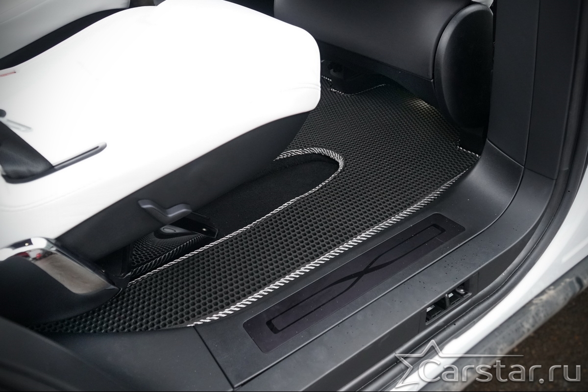 Автомобильные коврики EVA Tesla Model X 6 мест 3 ряда (2015->) – это долговечные, удобные и универсальные аксессуары, которые помогут надежно защитить салон и багажник вашего авто от пыли, грязи и влаги в любое время года.