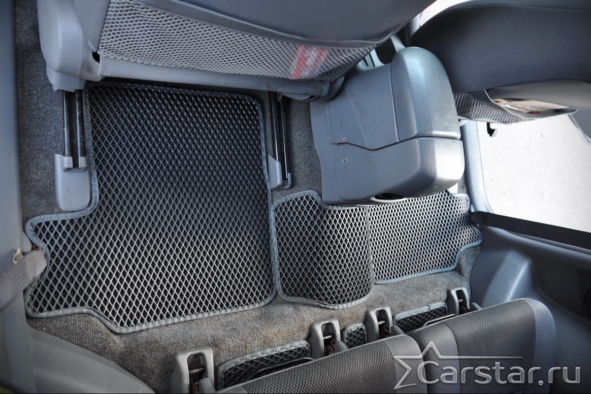 Толщина ковриков EVA составляет 10-12 мм. Глубина ячеек 7-8 мм. Такая толщина ковриков позволяет им служить довольно долго, не протираясь до 3 лет. А благодаря такой глубине ячеек коврик EVA площадью 1 кв.м. способен захватить около 3,5 л жидкости, сохраняя в чистоте вашу обувь и обивку салона.