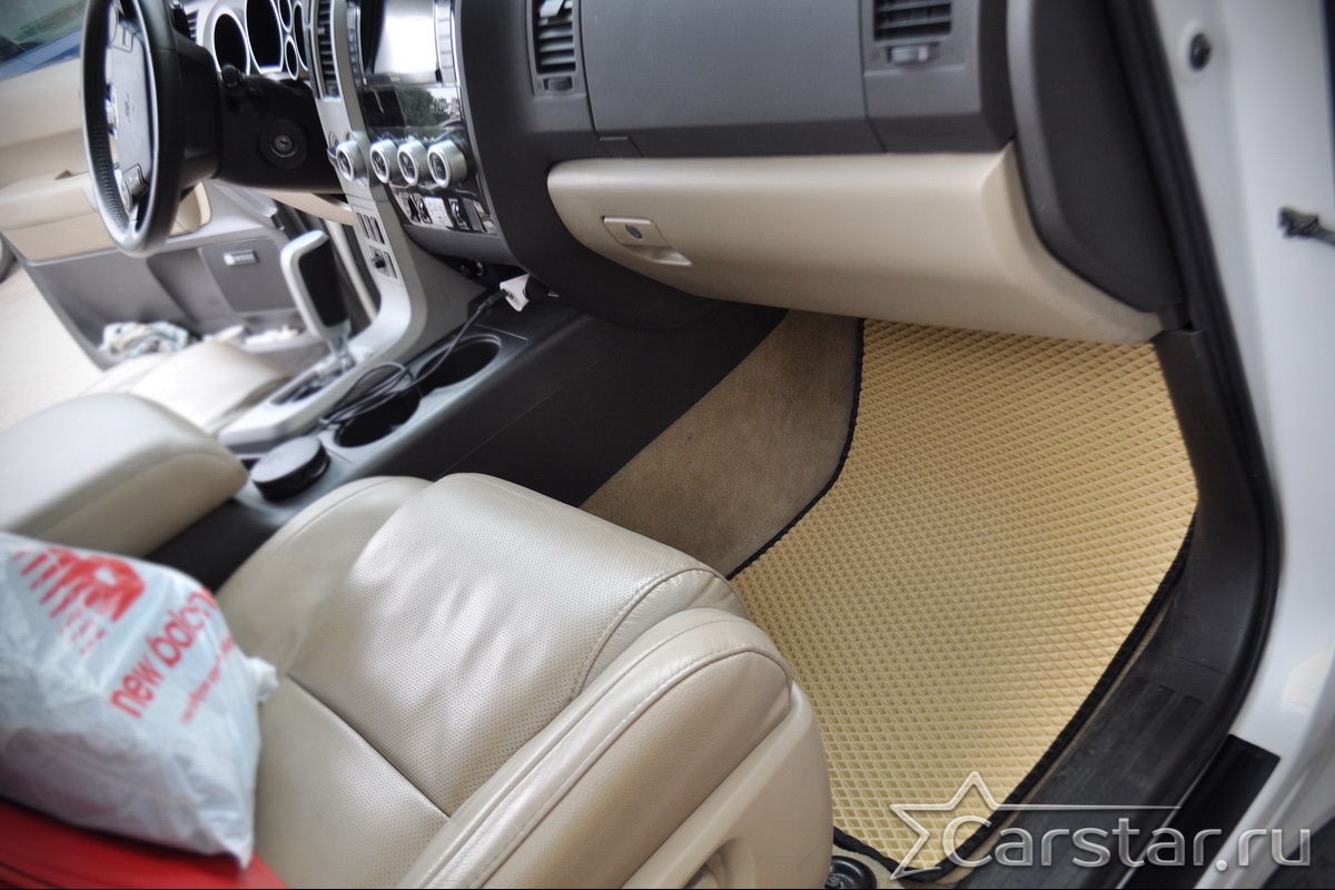 Автомобильные коврики EVA Toyota Sequoia II 3 ряда (2008->) – это долговечные, удобные и универсальные аксессуары, которые помогут надежно защитить салон и багажник вашего авто от пыли, грязи и влаги в любое время года.