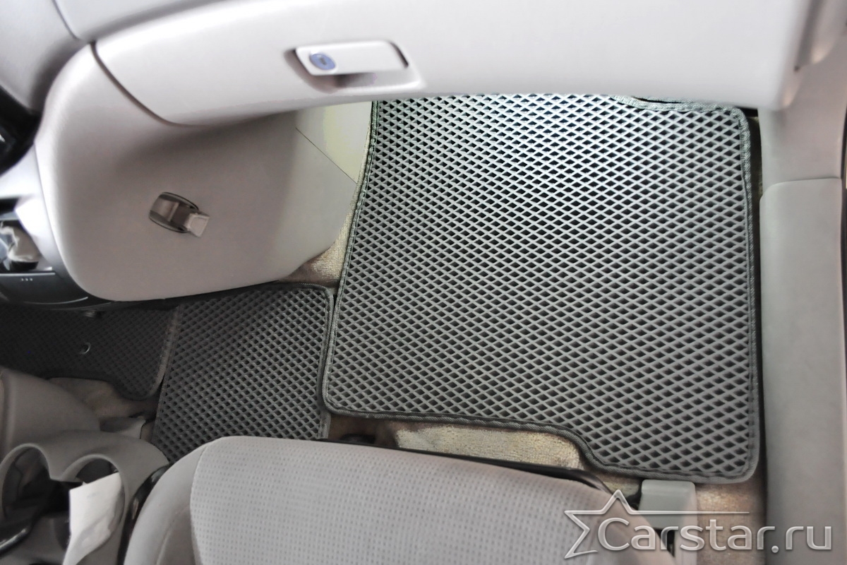 Толщина ковриков EVA составляет 10-12 мм. Глубина ячеек 7-8 мм. Такая толщина ковриков позволяет им служить довольно долго, не протираясь до 3 лет. А благодаря такой глубине ячеек коврик EVA площадью 1 кв.м. способен захватить около 3,5 л жидкости, сохраняя в чистоте вашу обувь и обивку салона.