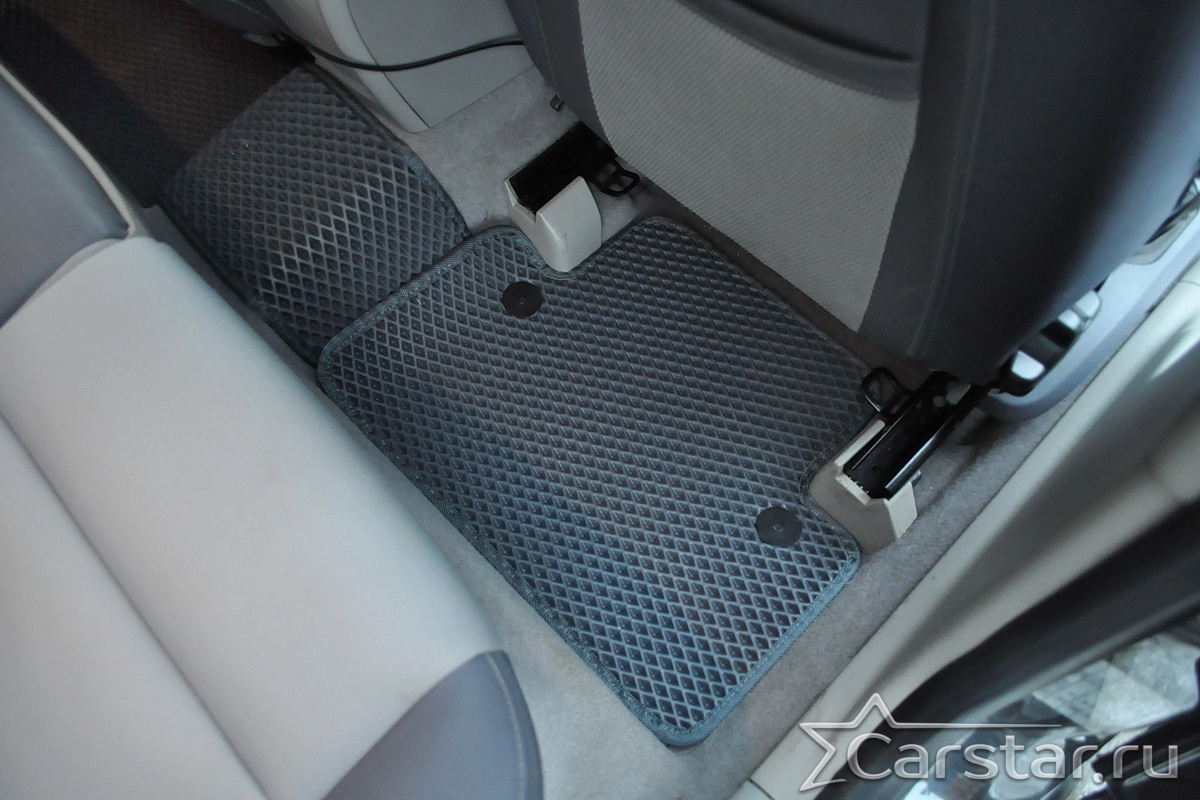 Толщина ковриков EVA составляет 10-12 мм. Глубина ячеек 7-8 мм. Такая толщина ковриков позволяет им служить довольно долго, не протираясь до 3 лет. А благодаря такой глубине ячеек коврик EVA площадью 1 кв.м. способен захватить около 3,5 л жидкости, сохраняя в чистоте вашу обувь и обивку салона.