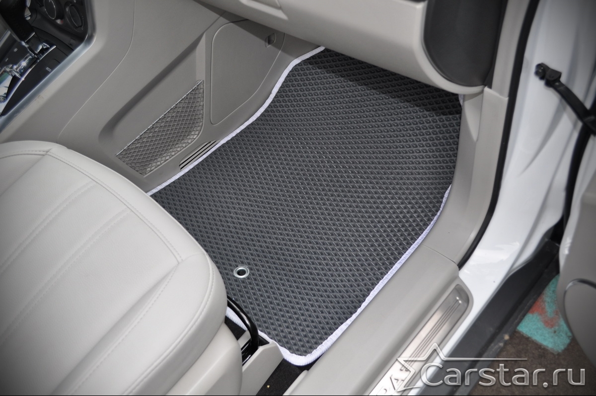 Текстильные коврики надёжно крепятся с помощью оригинальных систем фиксации. Обратная сторона имеет противоскользящее покрытие, что обеспечивает защиту от смещений и безопасность. Максимальное удобство достигается точными лекалами.