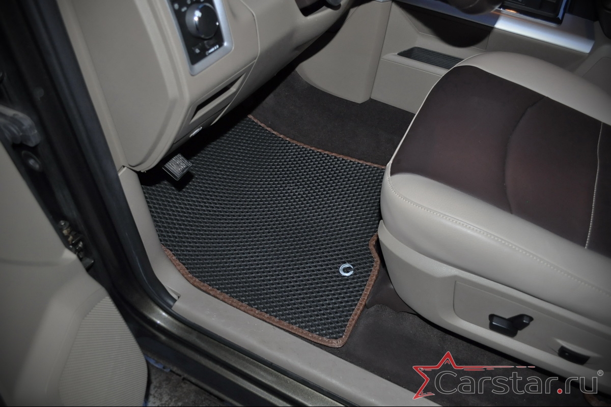 Текстильные автомобильные коврики Dodge RAM IV кабина 1.5 (2008-2018) – это классический аксессуар, который обеспечит салону автомобиля неизменную чистоту, порядок и уют. Компания Carstar предлагает изделия из качественного ковролина в сочетании с полипропиленовым основанием на шипах, такая комбинация делает их прочными и водонепроницаемыми.
