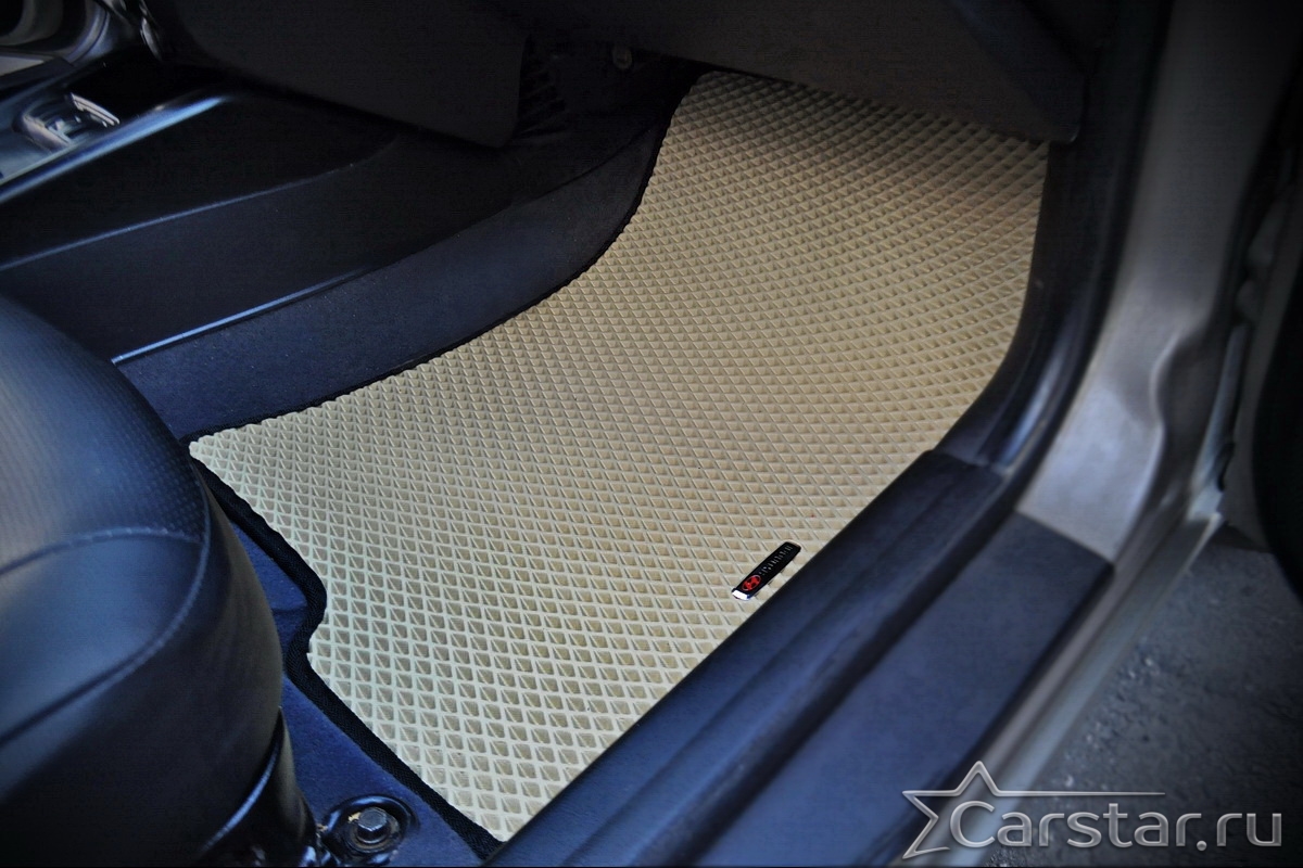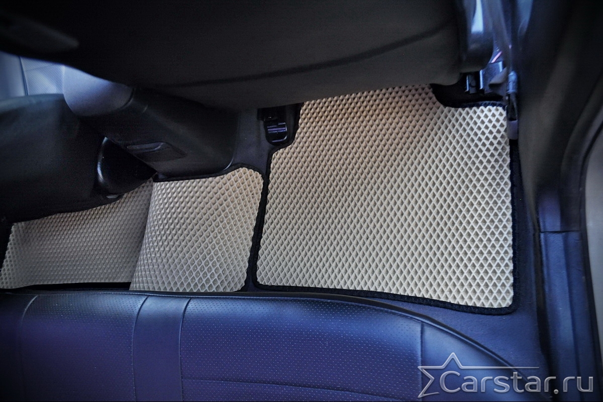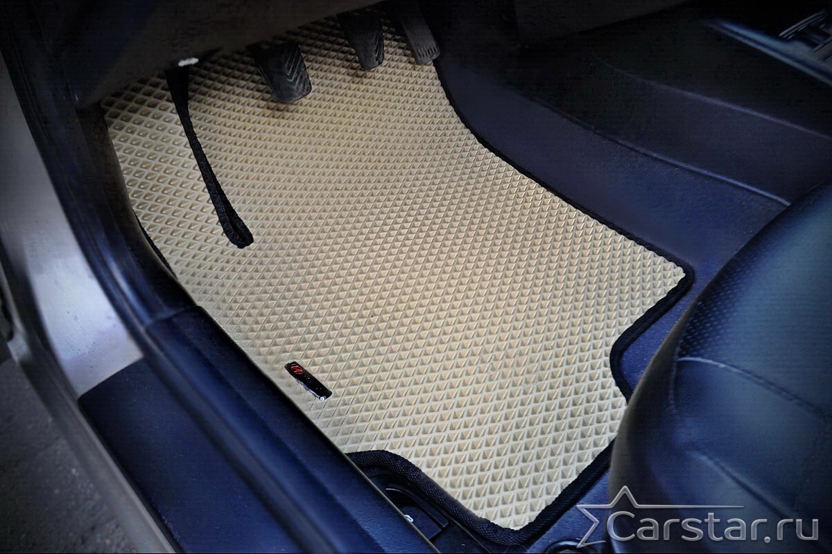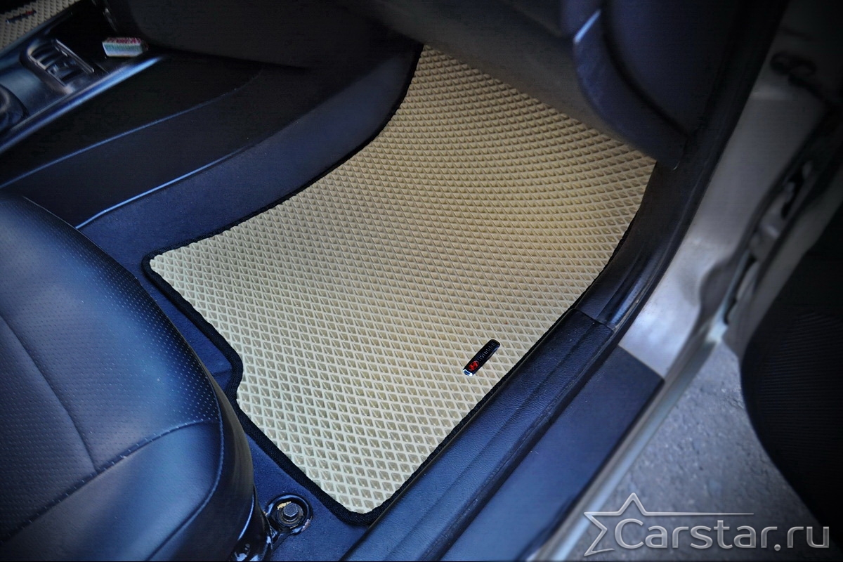 Текстильные коврики надёжно крепятся с помощью оригинальных систем фиксации. Обратная сторона имеет противоскользящее покрытие, что обеспечивает защиту от смещений и безопасность. Максимальное удобство достигается точными лекалами.