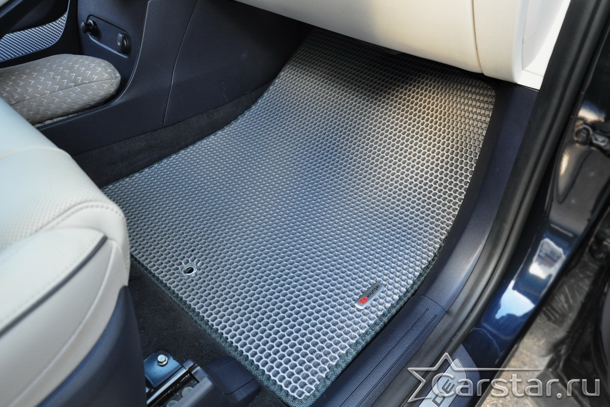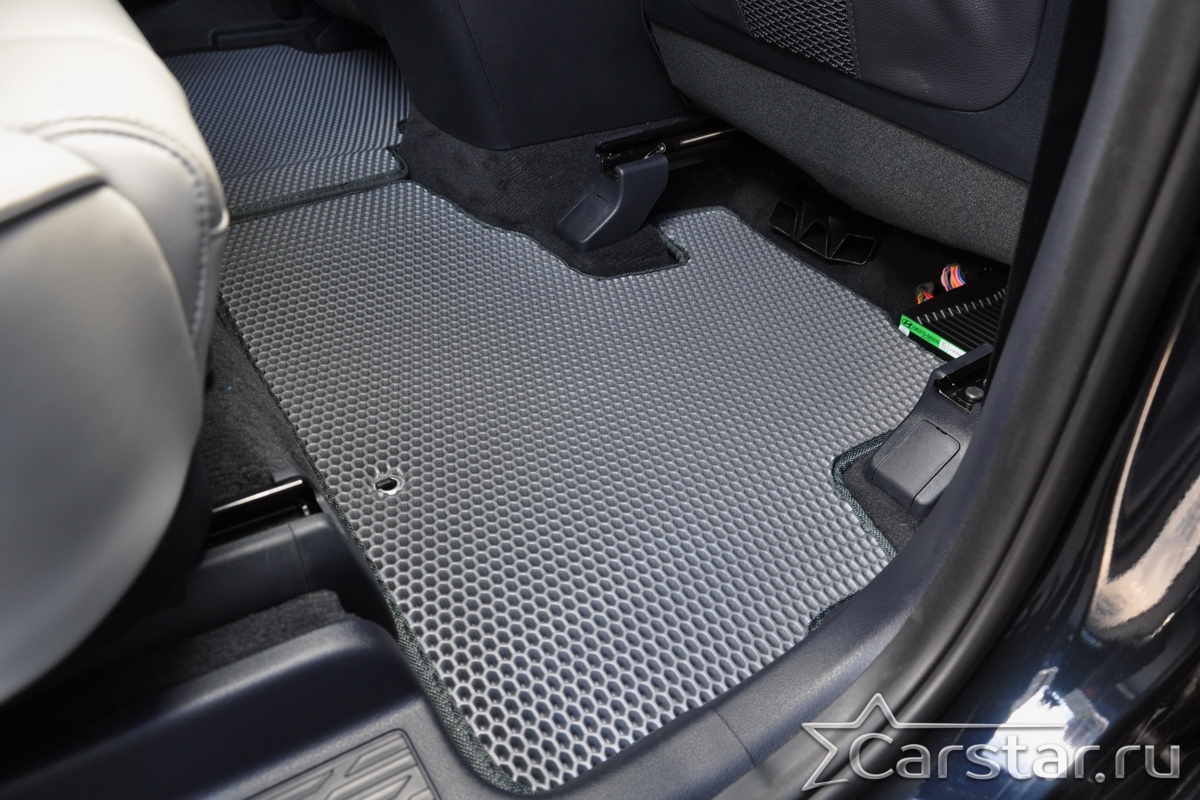 Текстильные коврики надёжно крепятся с помощью оригинальных систем фиксации. Обратная сторона имеет противоскользящее покрытие, что обеспечивает защиту от смещений и безопасность. Максимальное удобство достигается точными лекалами.