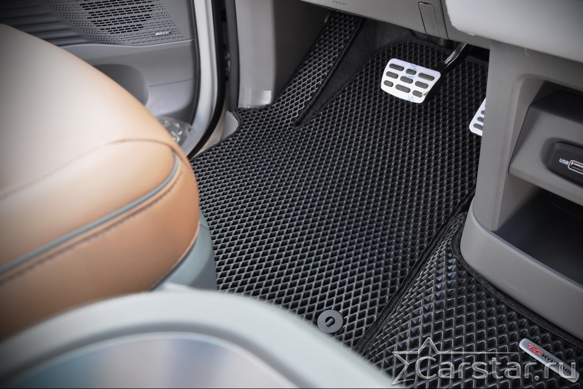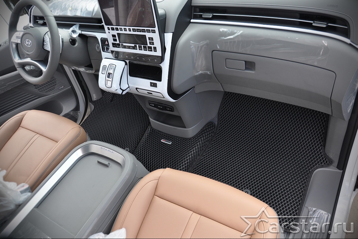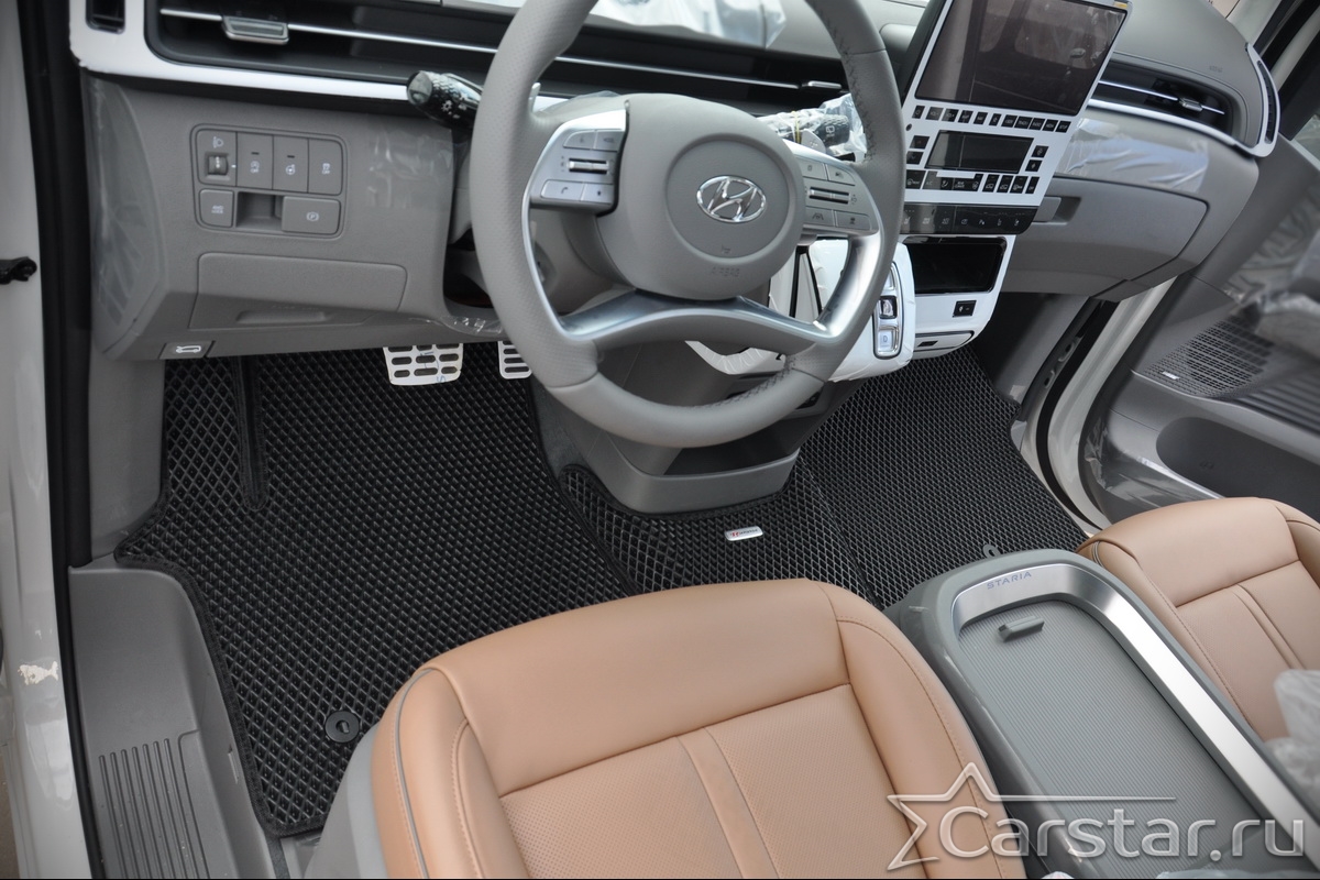 Текстильные автомобильные коврики Hyundai Staria 7 мест (2021->) – это классический аксессуар, который обеспечит салону автомобиля неизменную чистоту, порядок и уют. Компания Carstar предлагает изделия из качественного ковролина в сочетании с полипропиленовым основанием на шипах, такая комбинация делает их прочными и водонепроницаемыми.