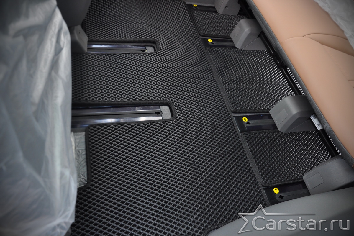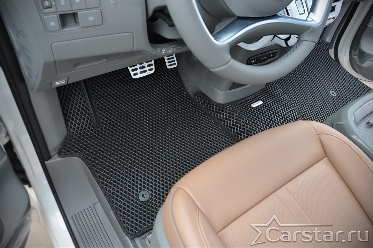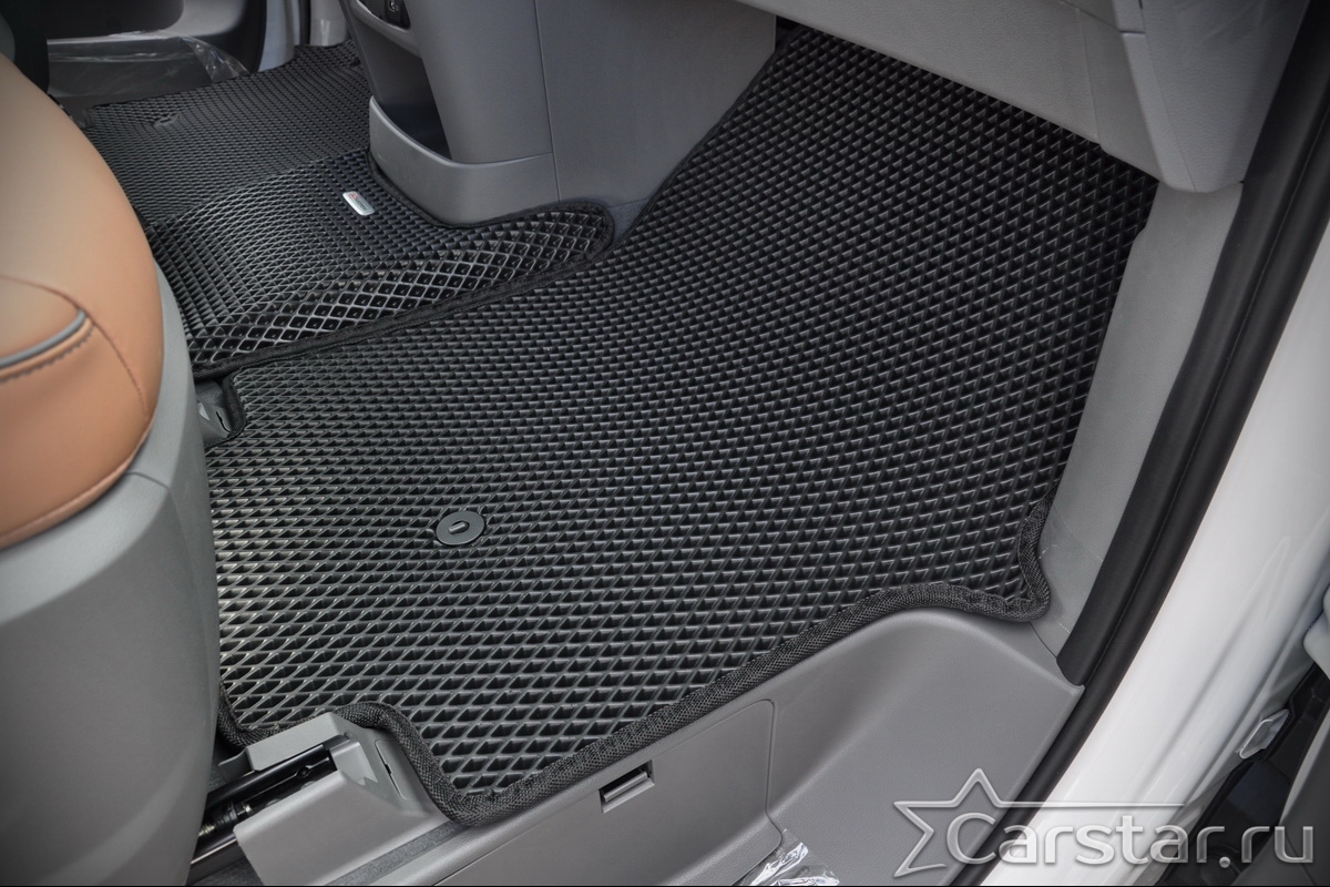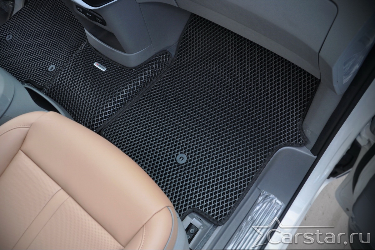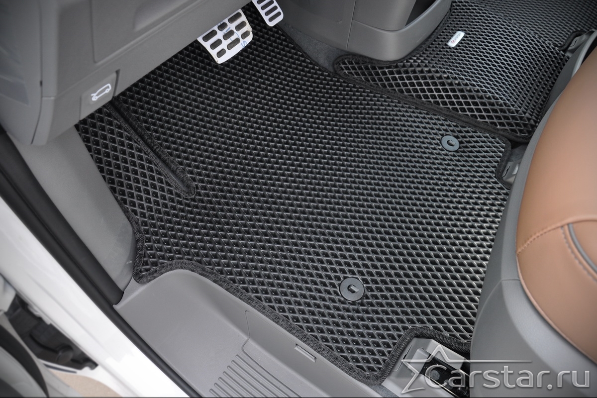 Текстильные коврики надёжно крепятся с помощью оригинальных систем фиксации. Обратная сторона имеет противоскользящее покрытие, что обеспечивает защиту от смещений и безопасность. Максимальное удобство достигается точными лекалами.