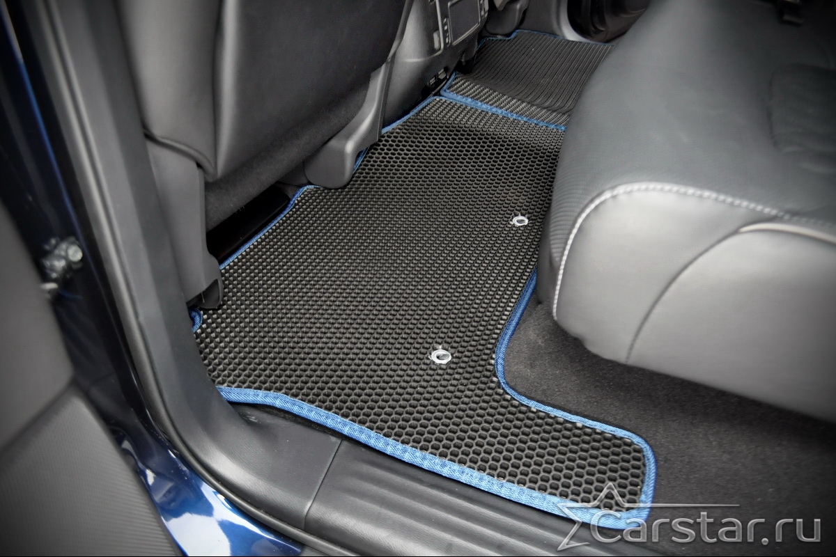 Текстильные коврики надёжно крепятся с помощью оригинальных систем фиксации. Обратная сторона имеет противоскользящее покрытие, что обеспечивает защиту от смещений и безопасность. Максимальное удобство достигается точными лекалами.