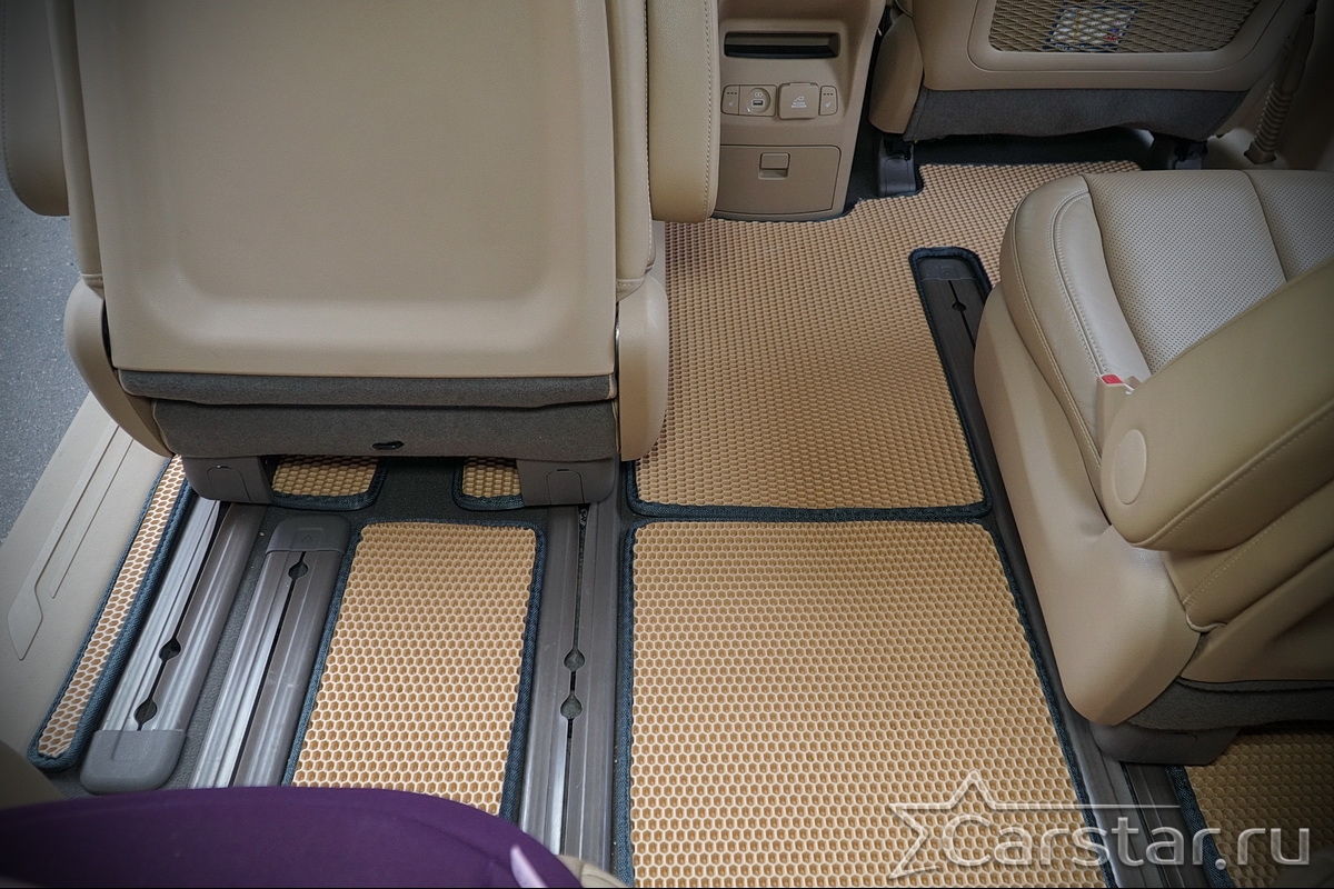 Текстильные автомобильные коврики Kia Carnival III (9мест) 2+2 без трансформеров (2014->) – это классический аксессуар, который обеспечит салону автомобиля неизменную чистоту, порядок и уют. Компания Carstar предлагает изделия из качественного ковролина в сочетании с полипропиленовым основанием на шипах, такая комбинация делает их прочными и водонепроницаемыми.