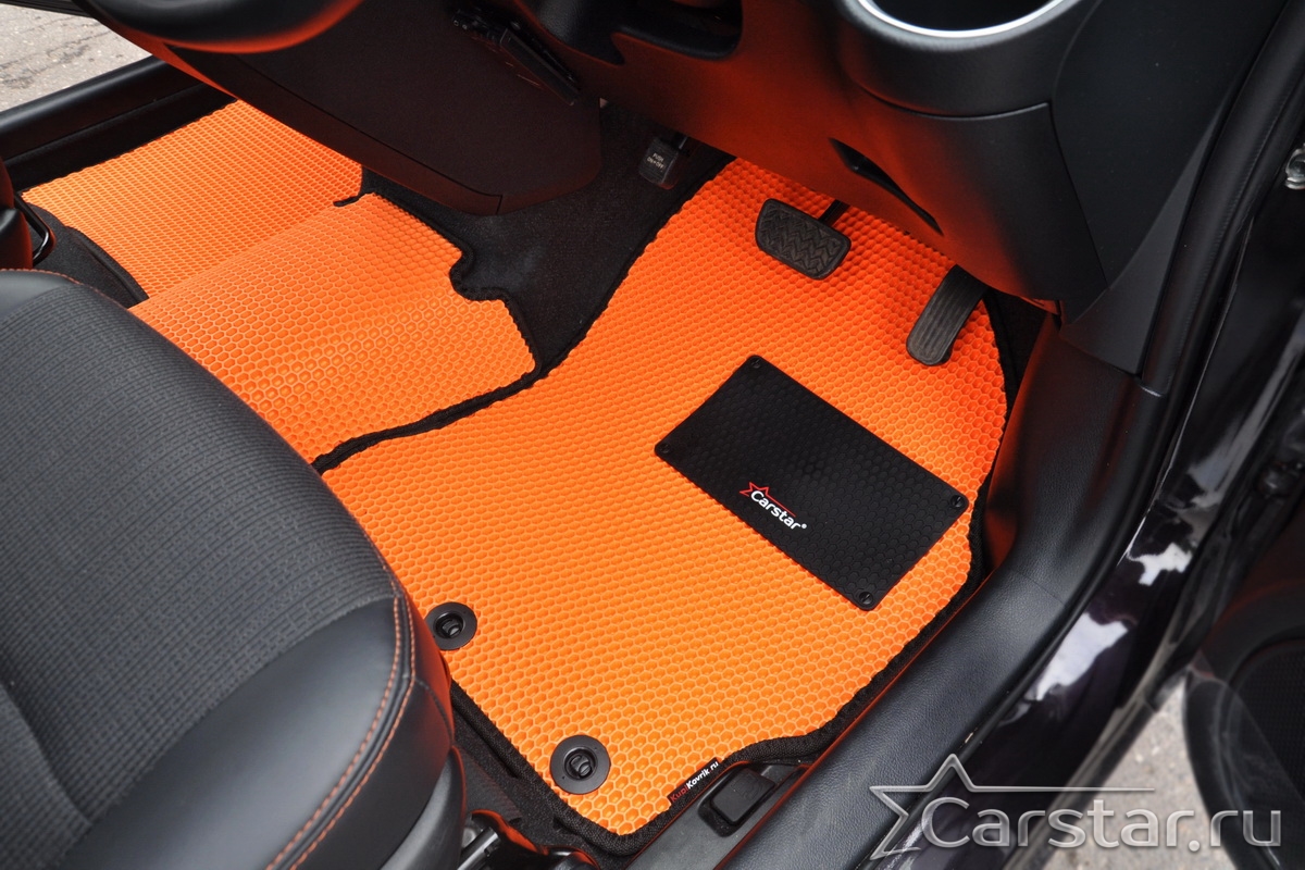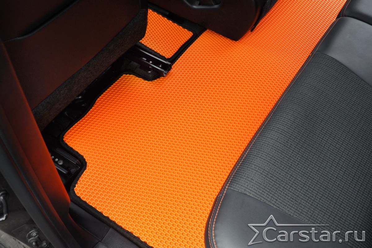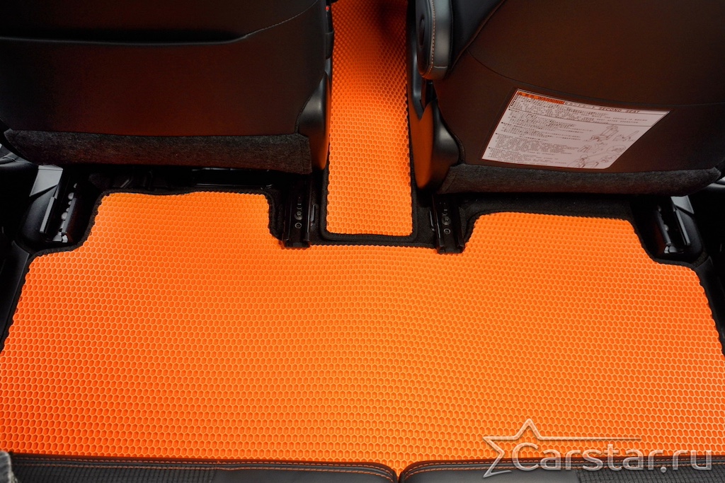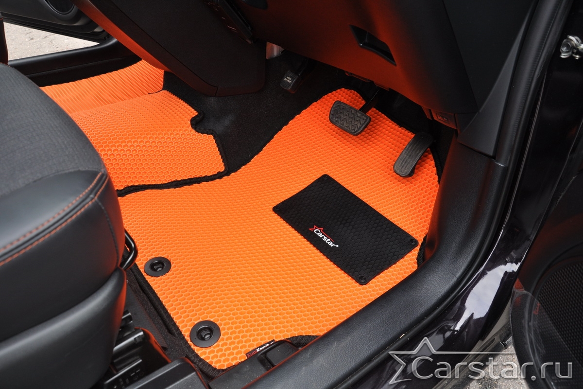 Текстильные коврики надёжно крепятся с помощью оригинальных систем фиксации. Обратная сторона имеет противоскользящее покрытие, что обеспечивает защиту от смещений и безопасность. Максимальное удобство достигается точными лекалами.