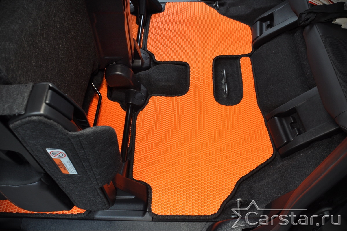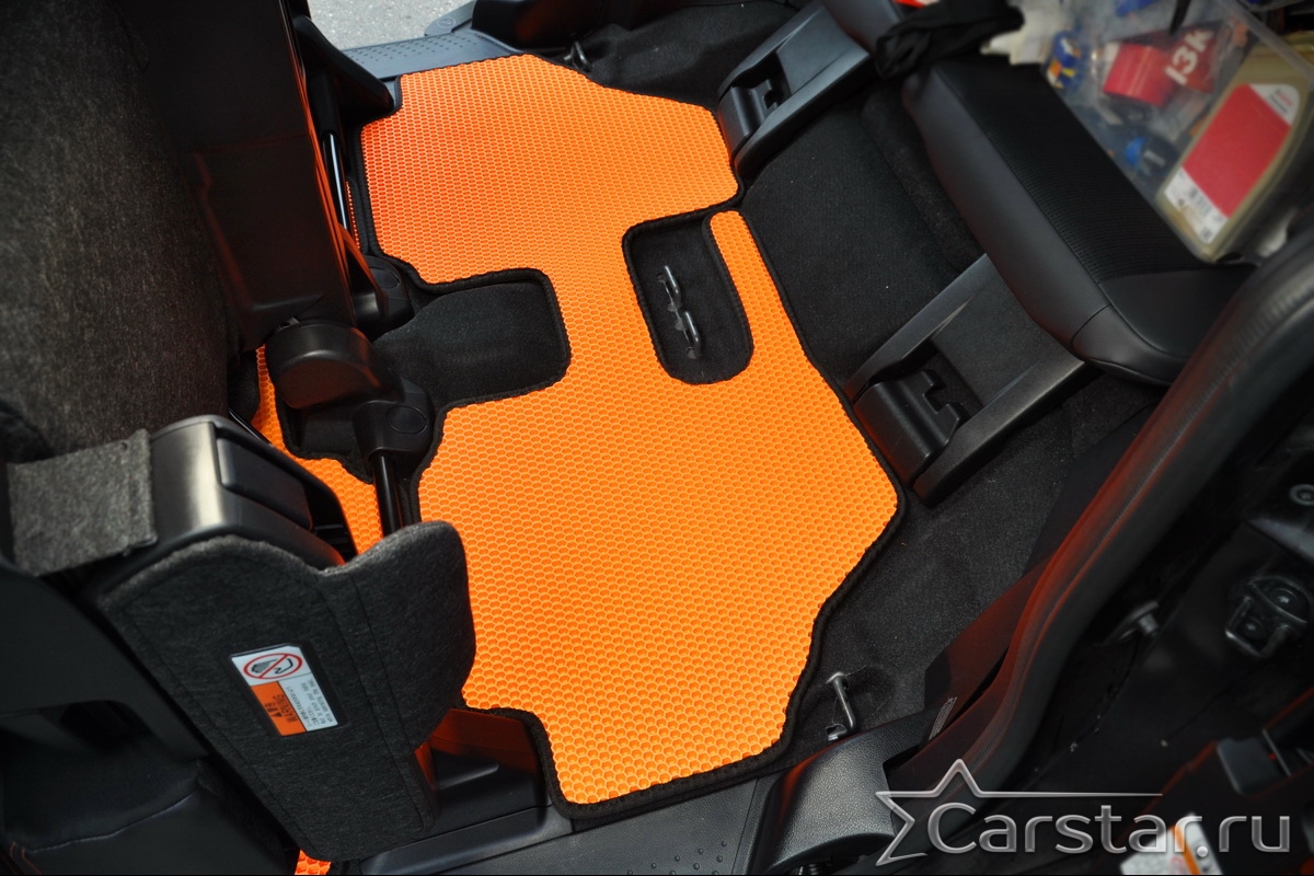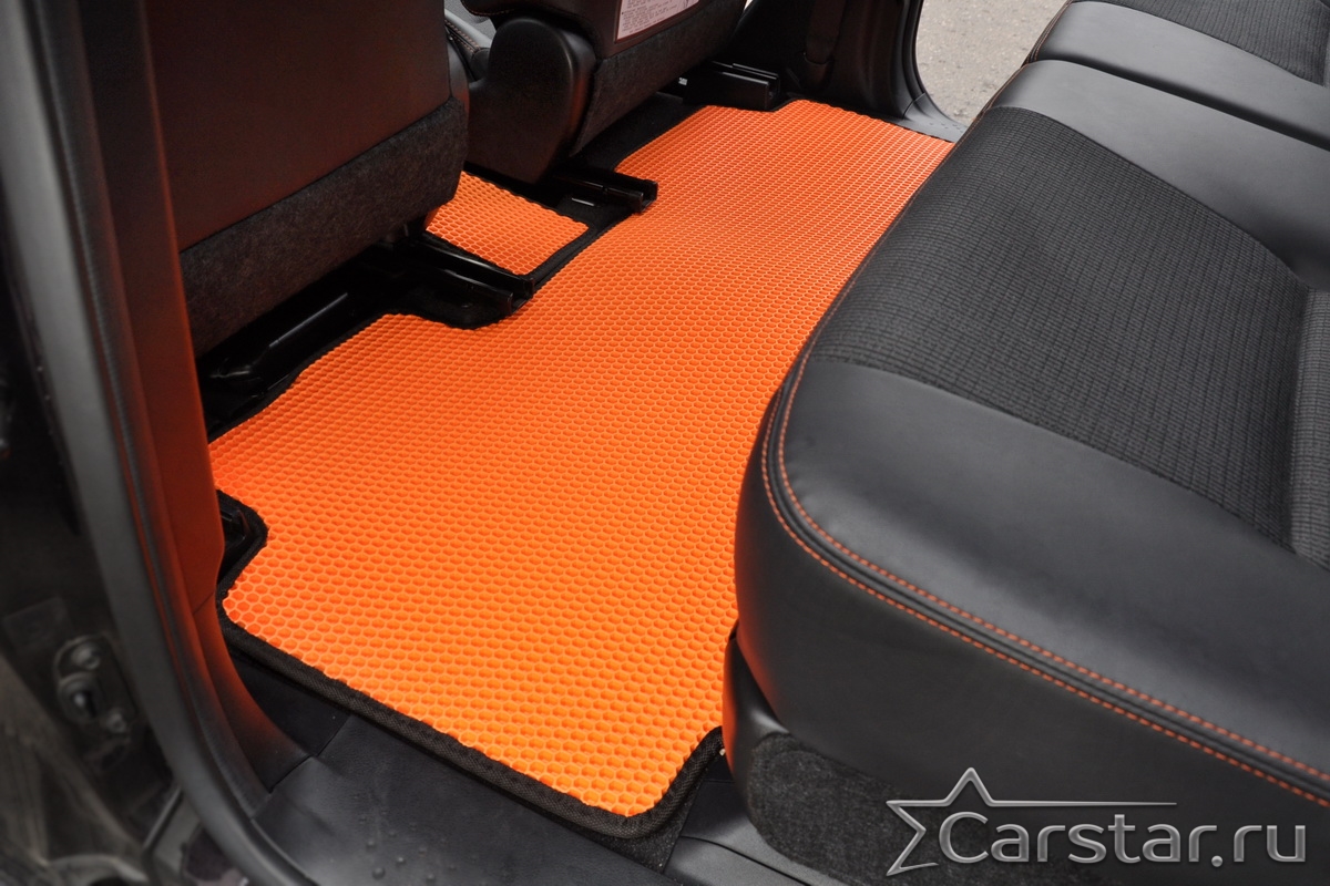 Текстильные коврики надёжно крепятся с помощью оригинальных систем фиксации. Обратная сторона имеет противоскользящее покрытие, что обеспечивает защиту от смещений и безопасность. Максимальное удобство достигается точными лекалами.